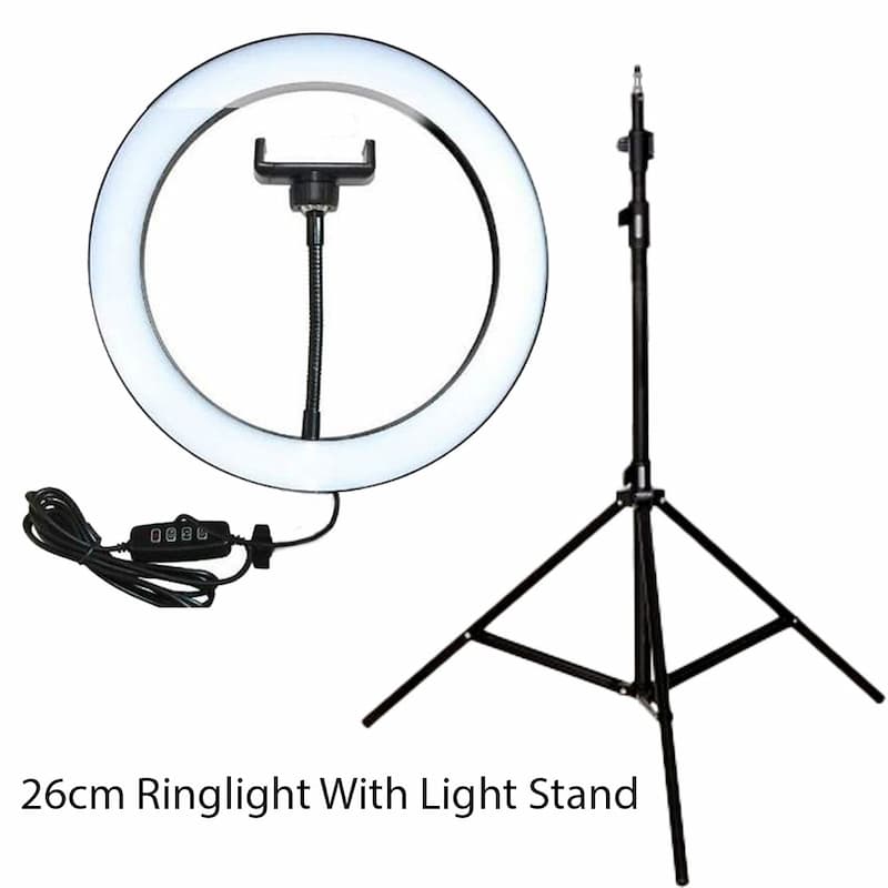 Product details of 26cm Selfie Ring light + 7 feet Tripod Stand + Mobile Phone HOlder.