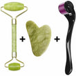 Combo pack of 2 Derma Roller Skin Therapy 0.5 with 540 Micro and Jade Roller Anti-Aging Natural Stone Jade Roller with Noiseless Double Heads for Face