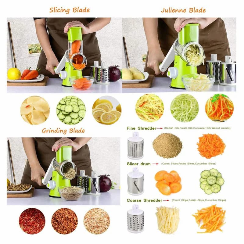 Drum Grater Table Top 3 in 1Multi-Functional Home Kitchen Drum Fruit Vegetable Rotatory Grater Slicer Manual Round Tabletop Drum Grater Slicer Cutter