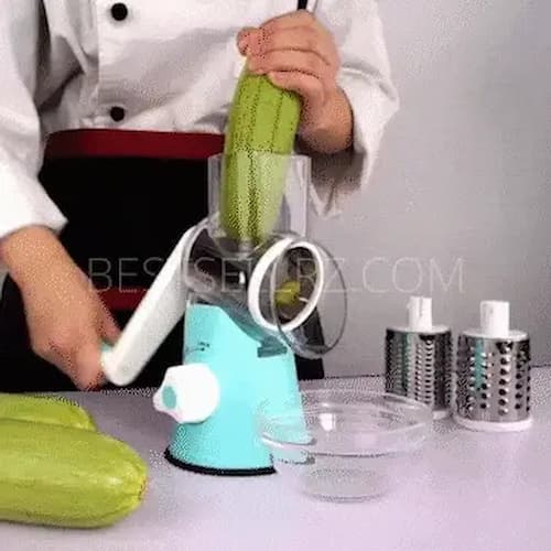 - 3-in-1 manual vegetable cutter, slicer, and grater.