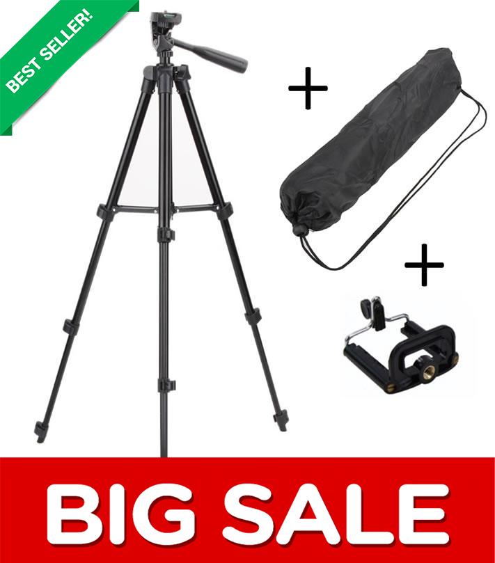3120 - Tripod Camera Stand With Mobile Holder - Black