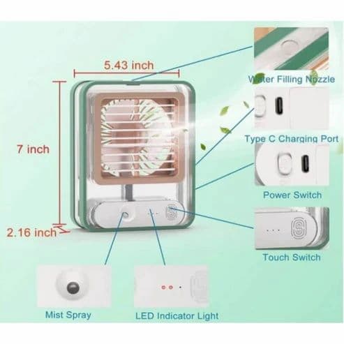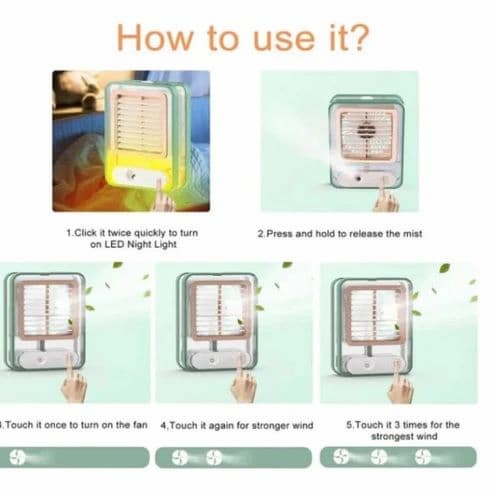 This portable cooling fan is activated by touch sensor.3 available speeds: touch it once for weak airflow, touch it twice for strong airflow, touch it again for mini table fan stronger airflow, turn the fan off by touching it for the 4th time. It is a desk fan in your home/office, also stand still beside you when you are camping, fishing, picnic, barbecue, on beach. Relieve your burden and cost in buying different fans for different use. It is made of a transparent plastic shell, which is not only a cute frame, but also a large water tank for misting function. With unique delicate mist design that cools the battery operated fan more easily, keeps your skin fresh and fresh from fatigue in hot summer. It is also a great water supply instrument or a facial steamer for long-lasting makeup.