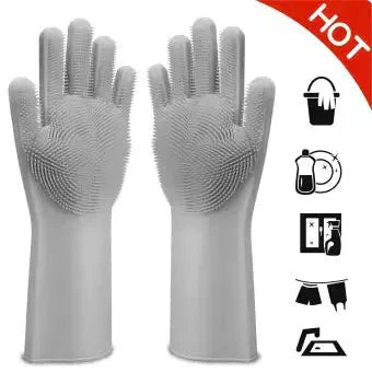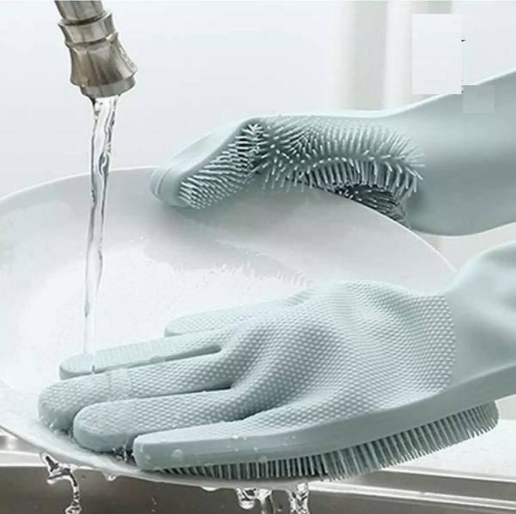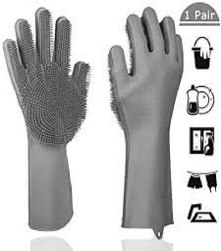 Reusable Silicone Magic Washing Gloves Pair with Scrubber for Kitchen, Bathroom, Car, Pet and Multipurpose Cleaning and Washing