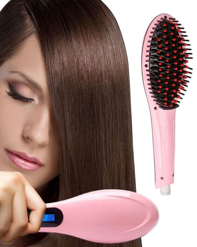 FAST HQT-906 - Electric Hair Straightener Brush - Pink