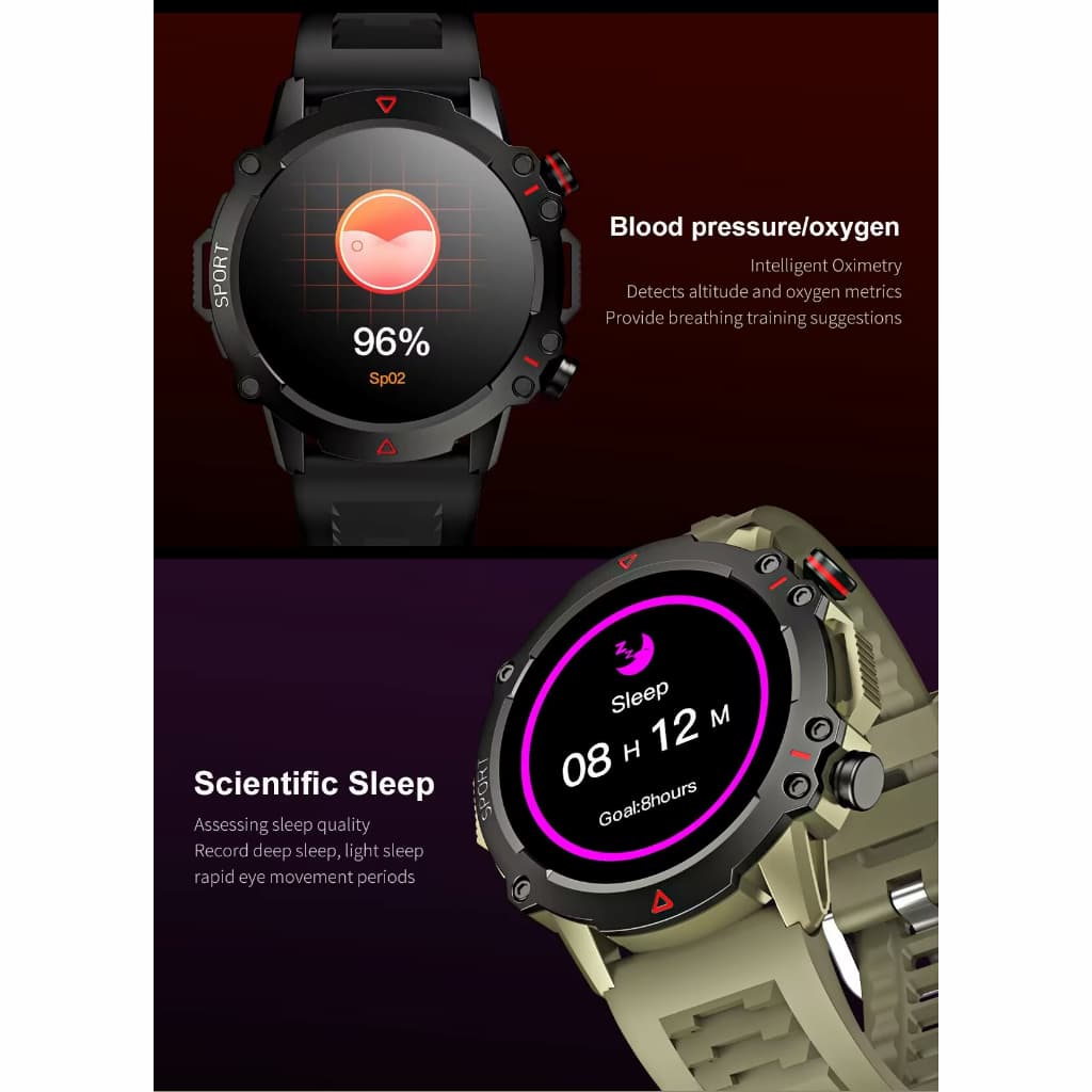 Smart Notifications(Call, Text, and Smartphone App Notifications), Weather Sync, Controls Smartphone Music and Camera, Find My Phone,Do Not Disturb Modes, Sedentary alert, Games, AI Voice