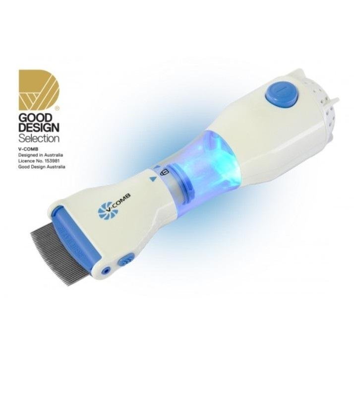 The V-Comb use the comb and suction power to gently lift lice and eggs. The teeth are rounded to smoothly run across the head. The comb head has been designed to adjust to either a rake or comb position for maximum comfort depending on the length of the hair. The design is smooth and rounded so that there is no sharp edges or components.As you gently comb through the hair, V-Comb’s™ disposable Capture Filters securely trap head lice and their eggs. This makes rechecking the hair easy and reduces the chances for infestation.After each treatment, simply remove the disposable Capture Filter, snap on the lid and hygienically dispose of the used filter. A brush is supplied with the unit to clean the stainless steel comb and unit between
